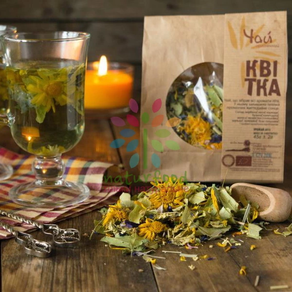 Состав: Липа, бузина, базилик лимонный, вербена, мелиса, василек, мальва, подсолнух, первоцвет, календула, каркаде.